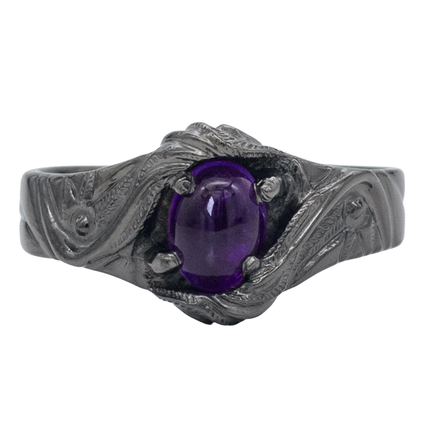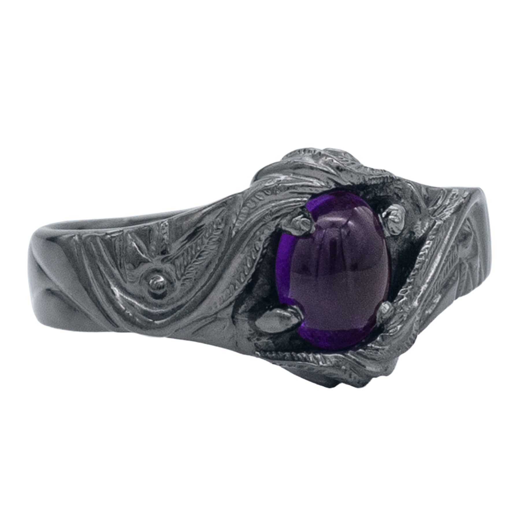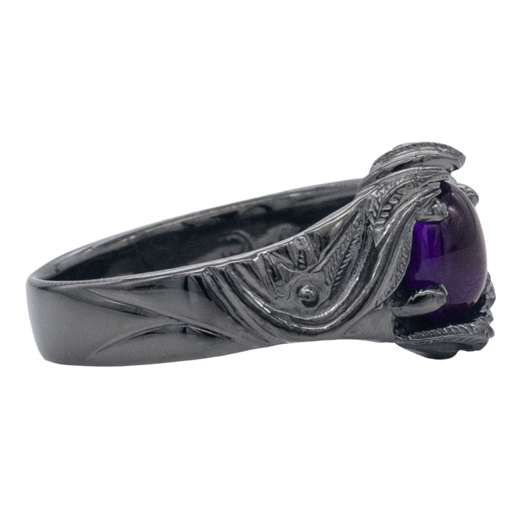 Stone: The ring is set with a 8x6 mm genuine amethyst cabochon gemstone.