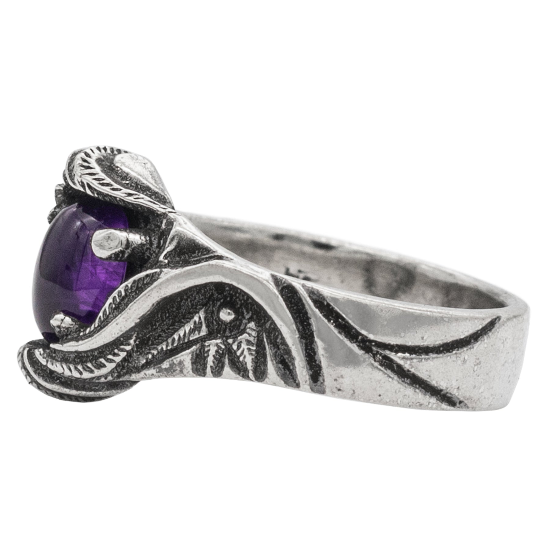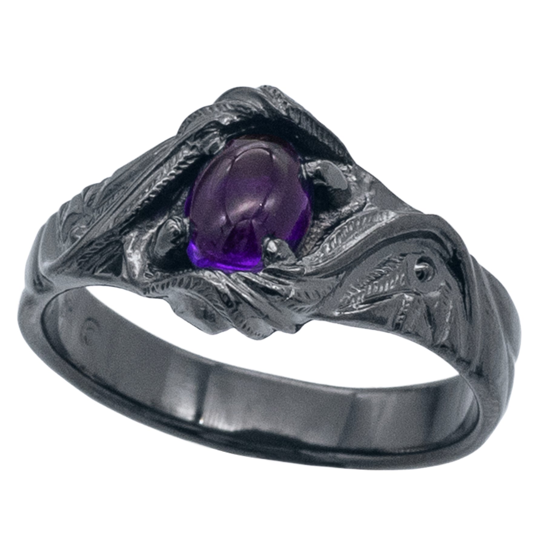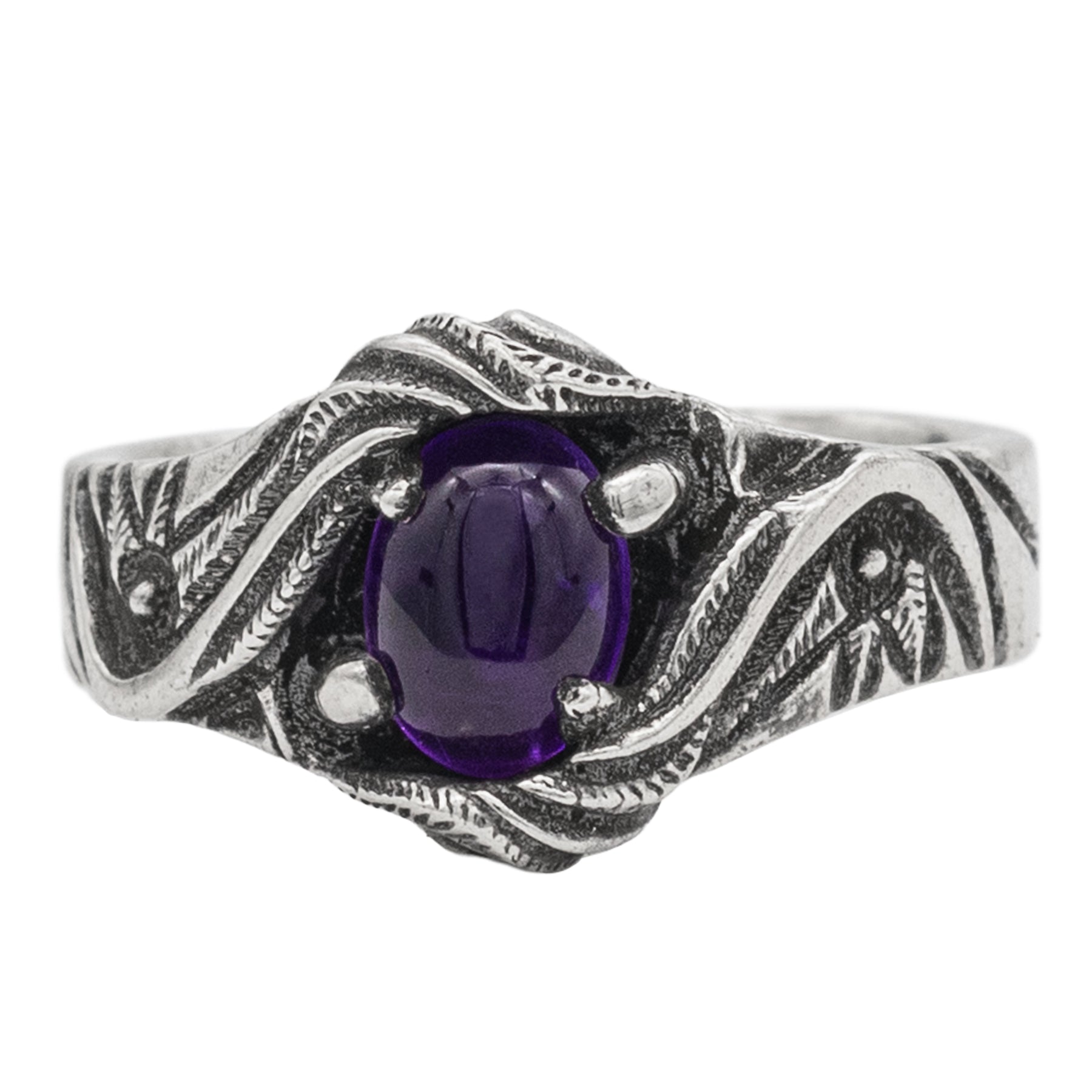 Stone: The ring is set with a 8x6 mm genuine amethyst cabochon gemstone.