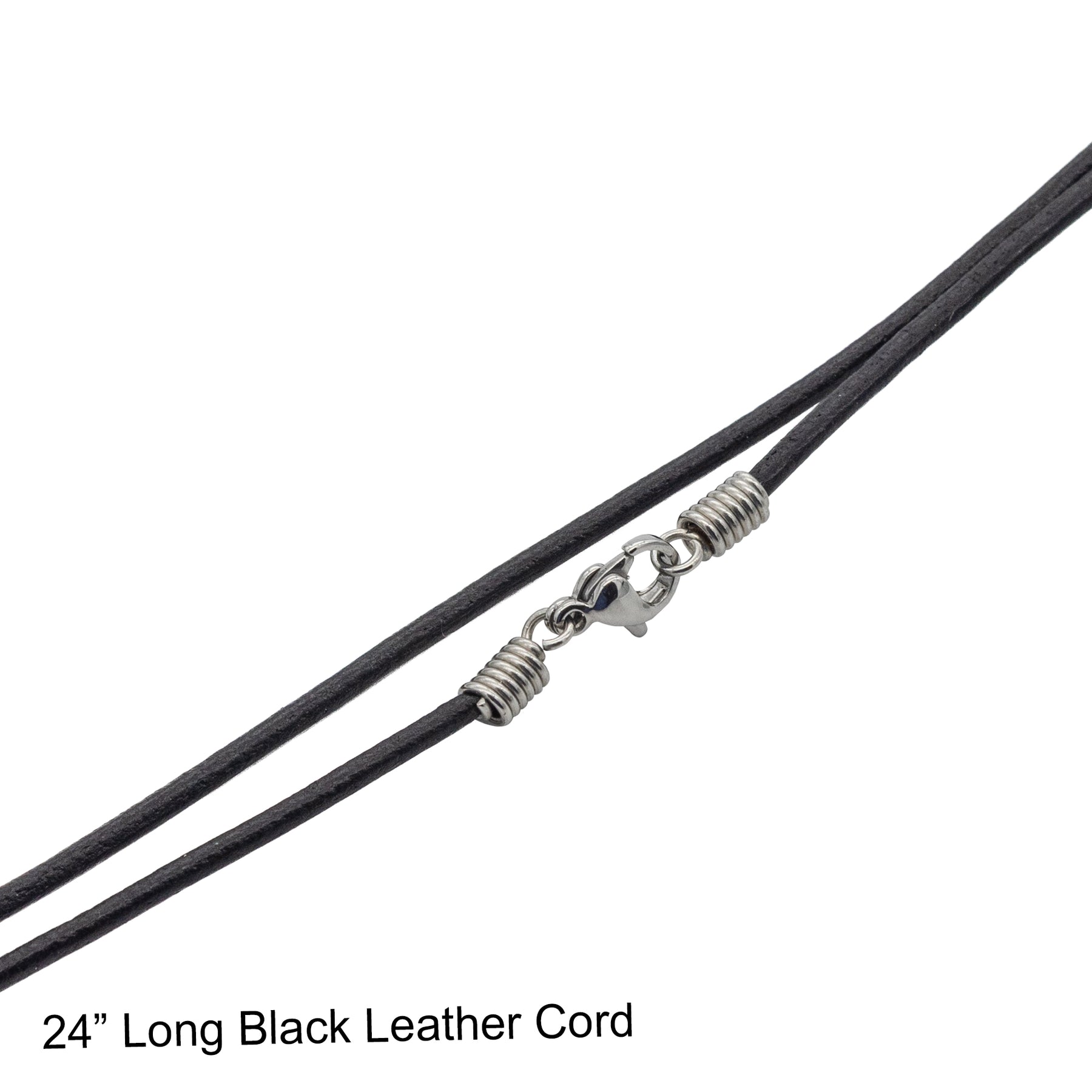 Chains: 24" long stainless steel curb chain or 24" long black leather cord (additional $5.00).