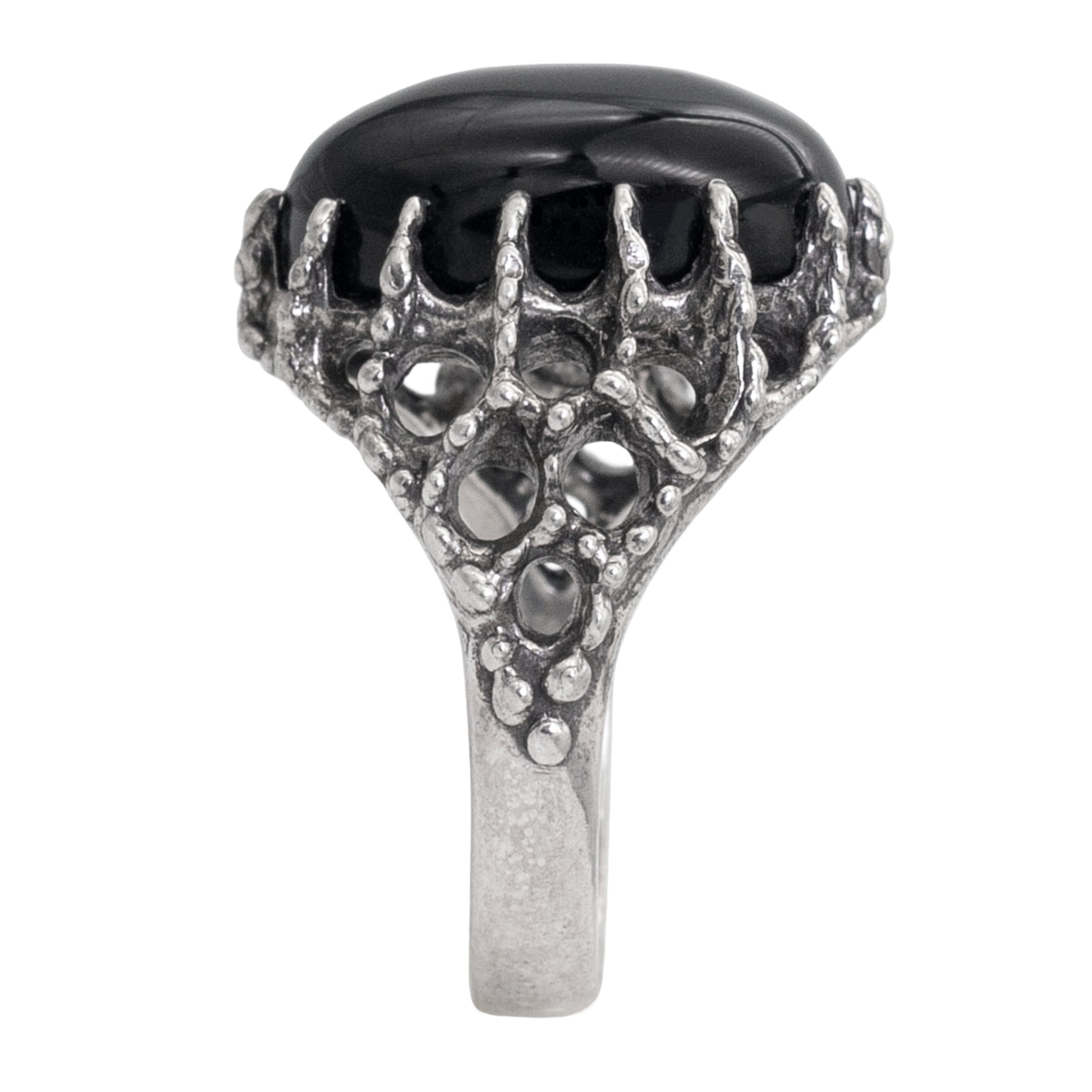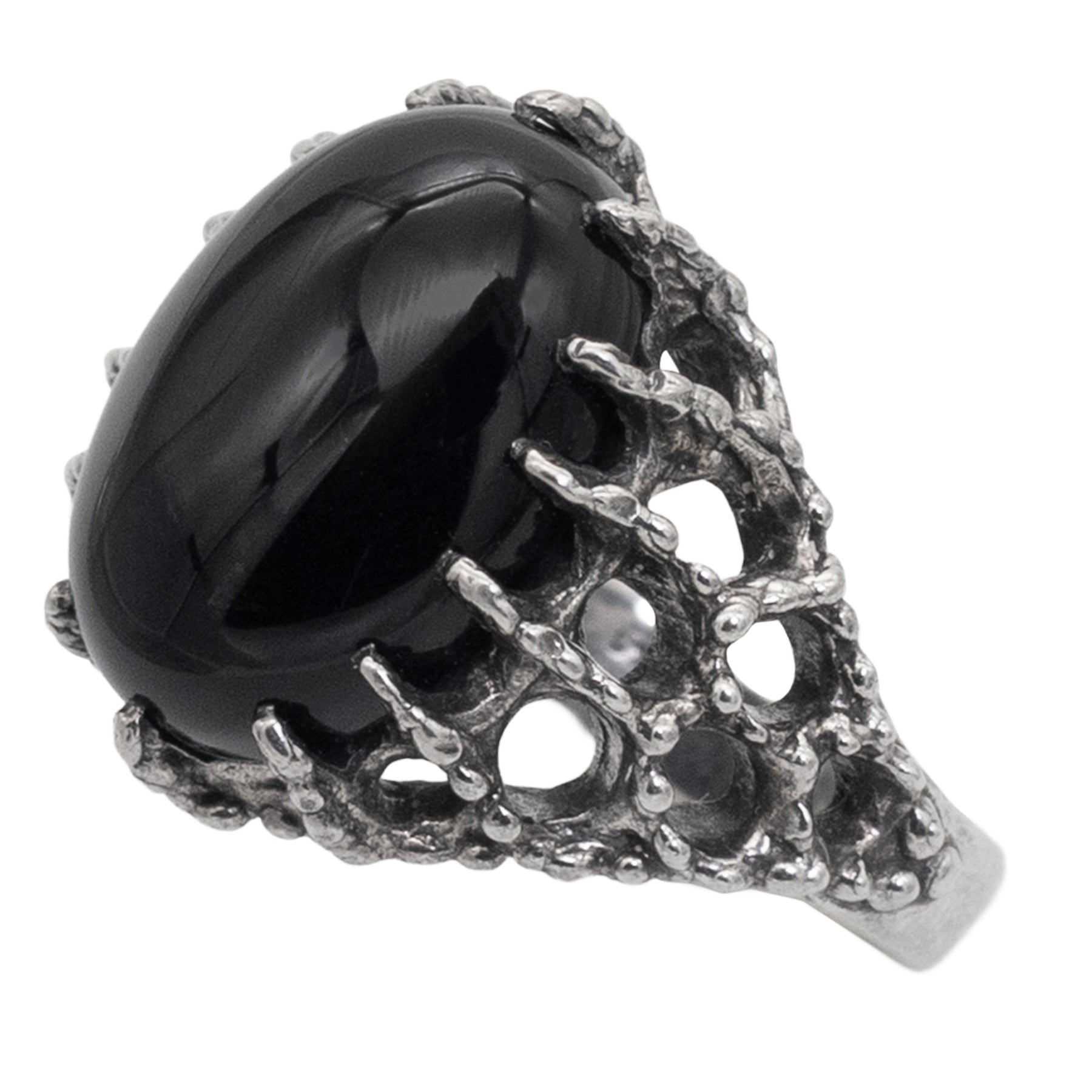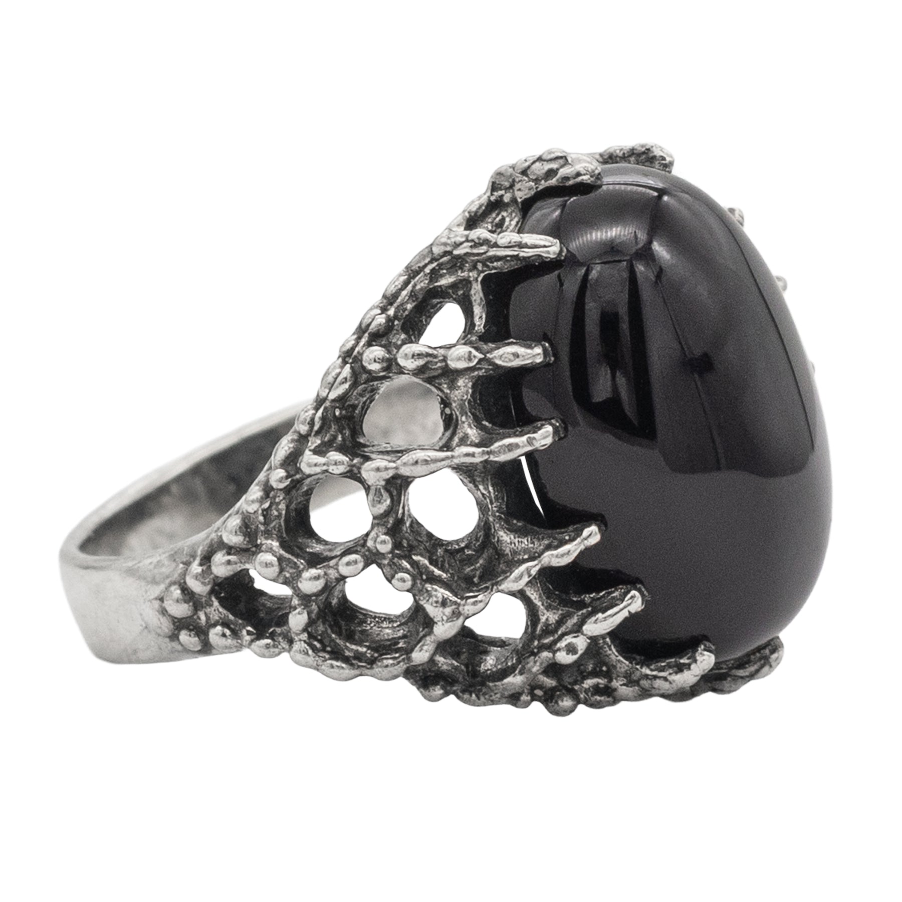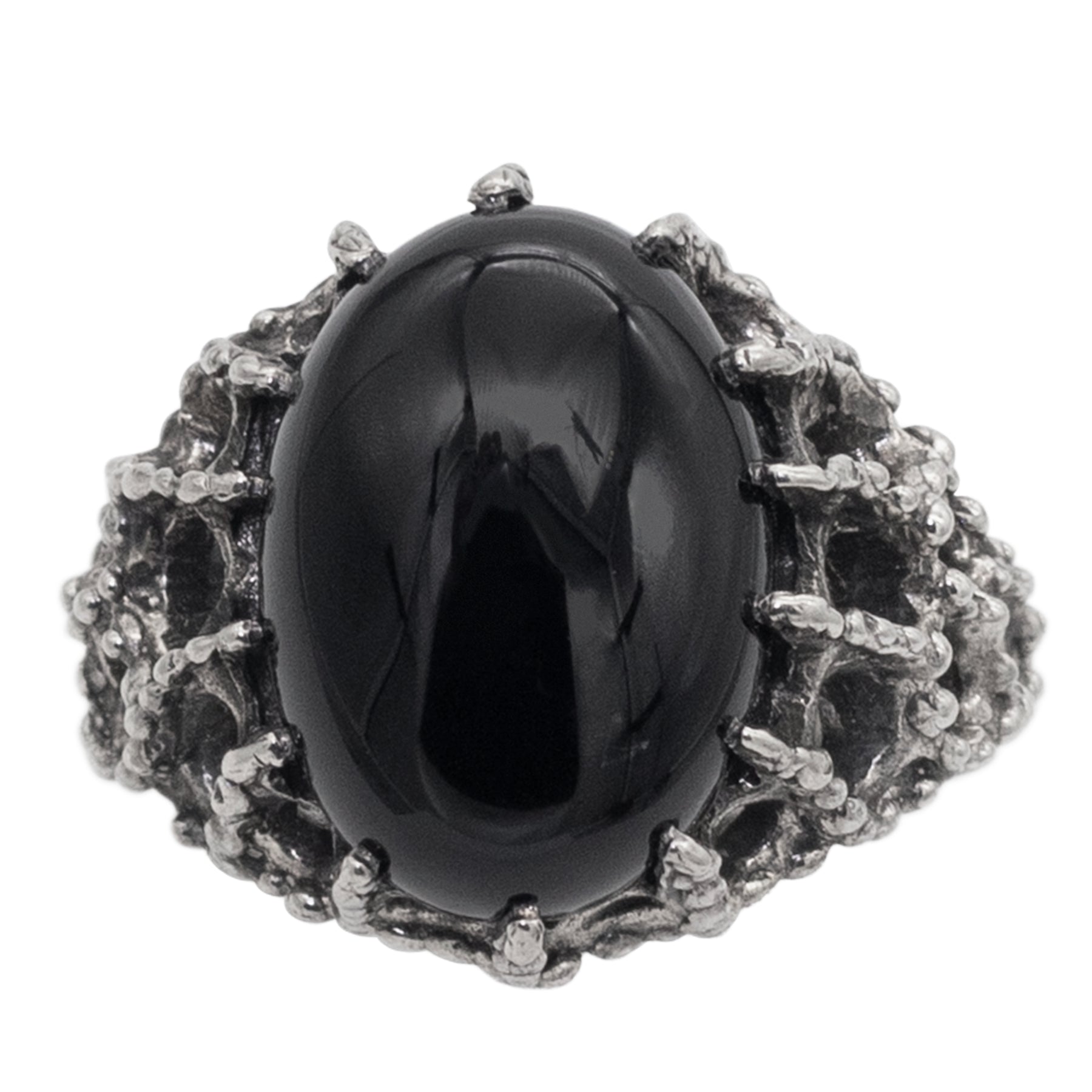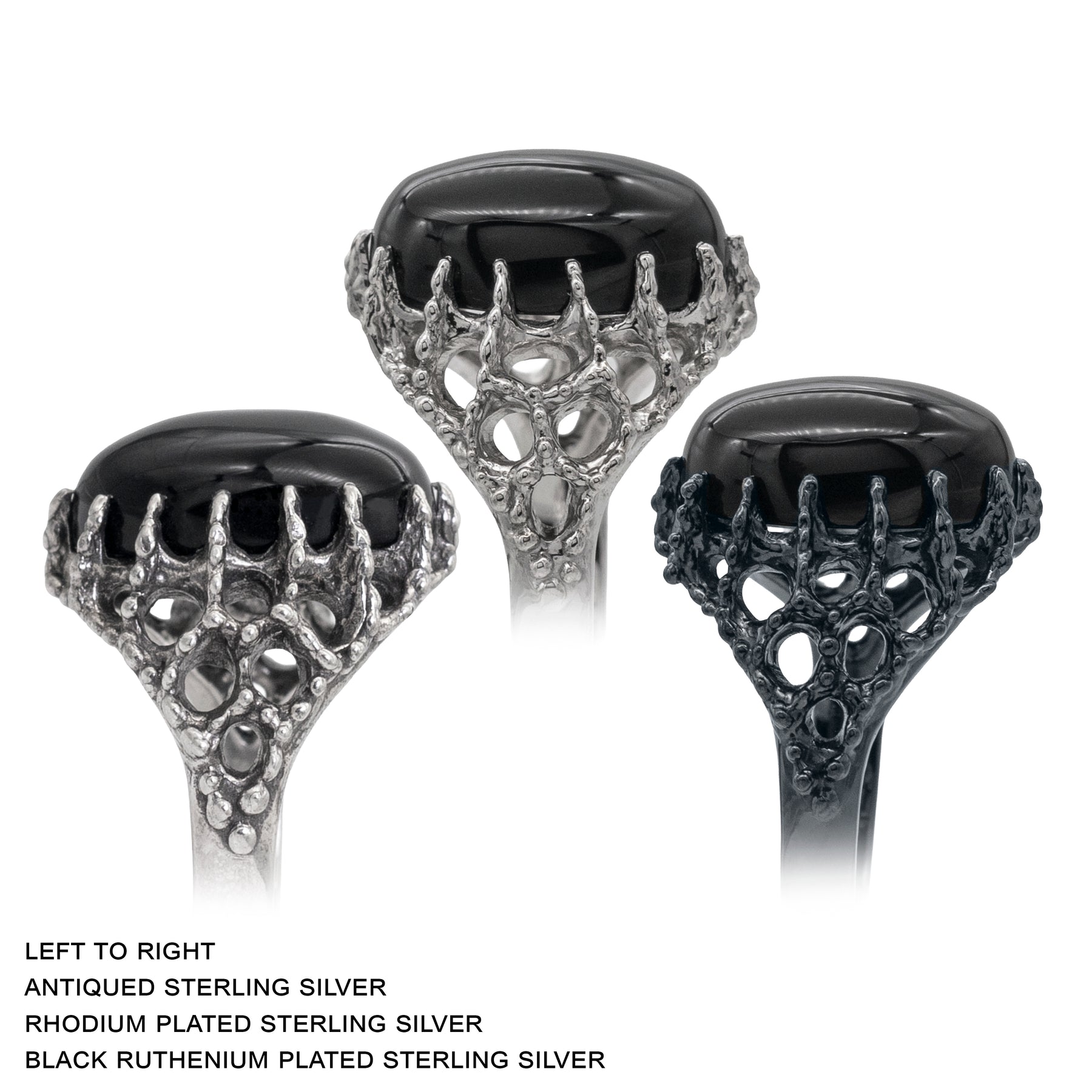 Stone: The ring is set with an 18 x 13 mm genuine black onyx cabochon.