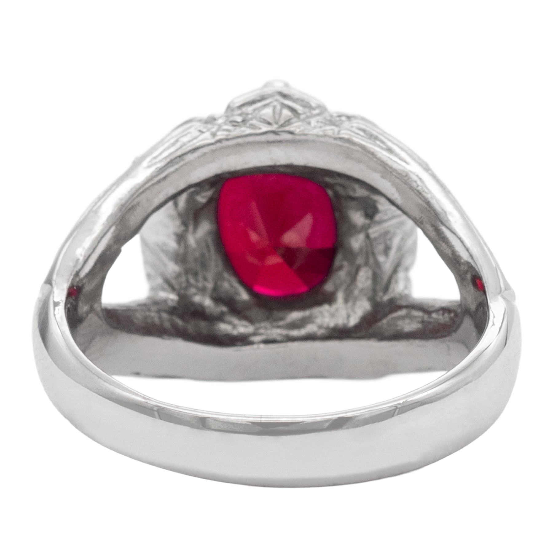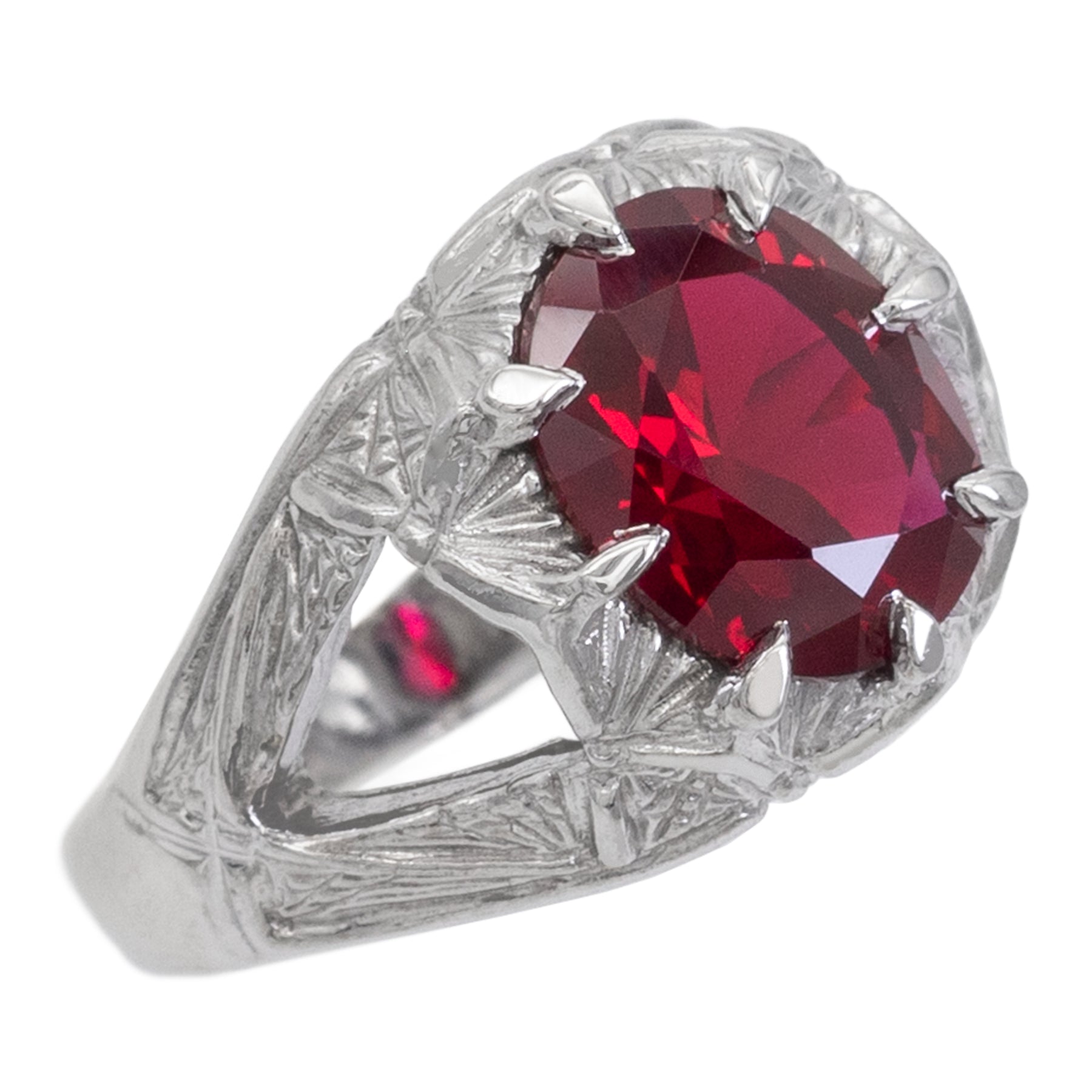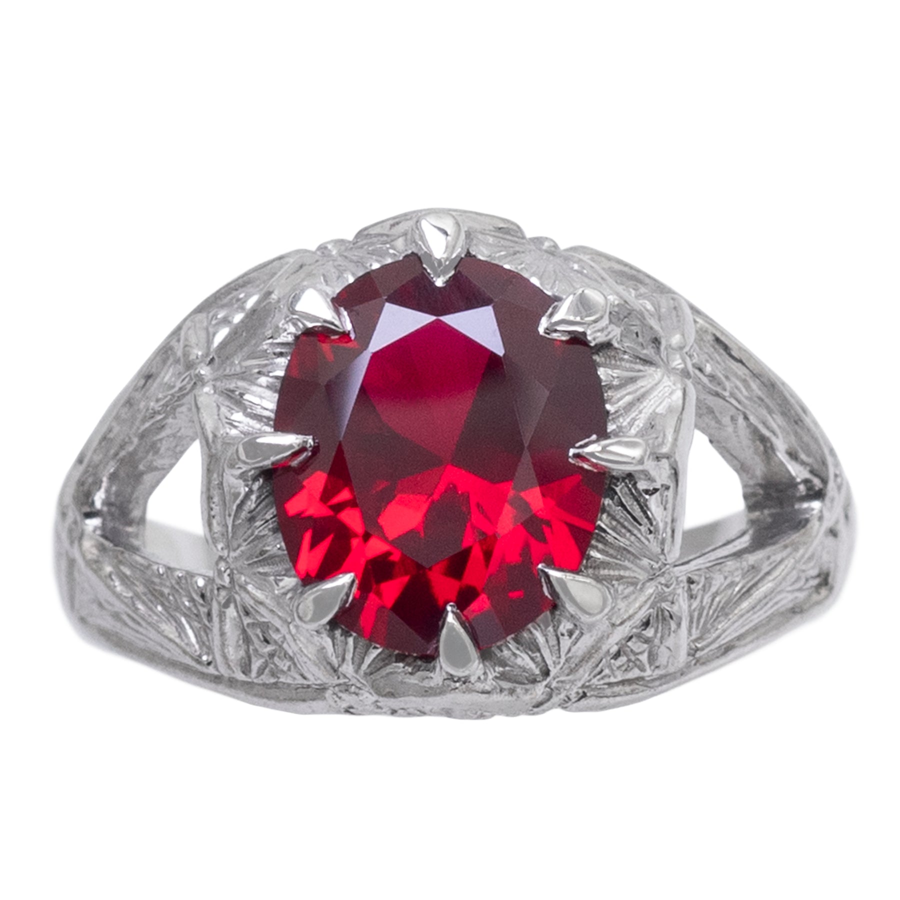 Stone: 12x10 mm faceted lab grown ruby.