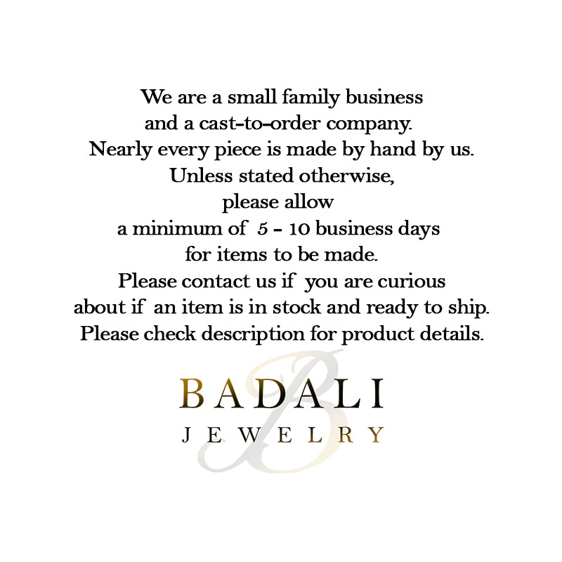 Production time and Process: We are a made-to-order company, nearly every item is hand made by our small team of jewelers in Utah. Your order will ship in 5 to 10 business days if the item is not in stock. For more information, please see our FAQ page.