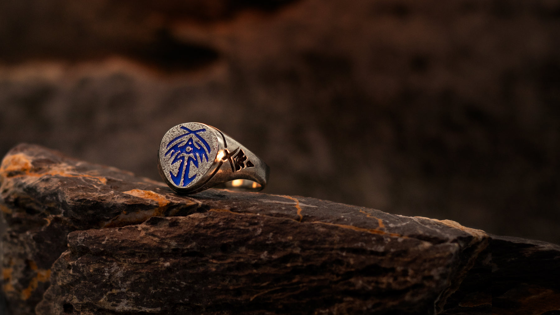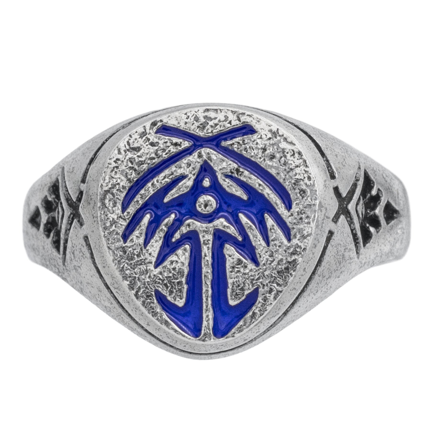 Finishing Options: Antiqued Bridge Four Face Sigil or Sapphire Blue Enameled Bridge Four Face Sigil, both versions are antiqued on the rest of the ring.